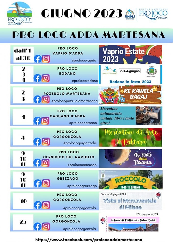 Appuntamenti maggio- giugno 2019